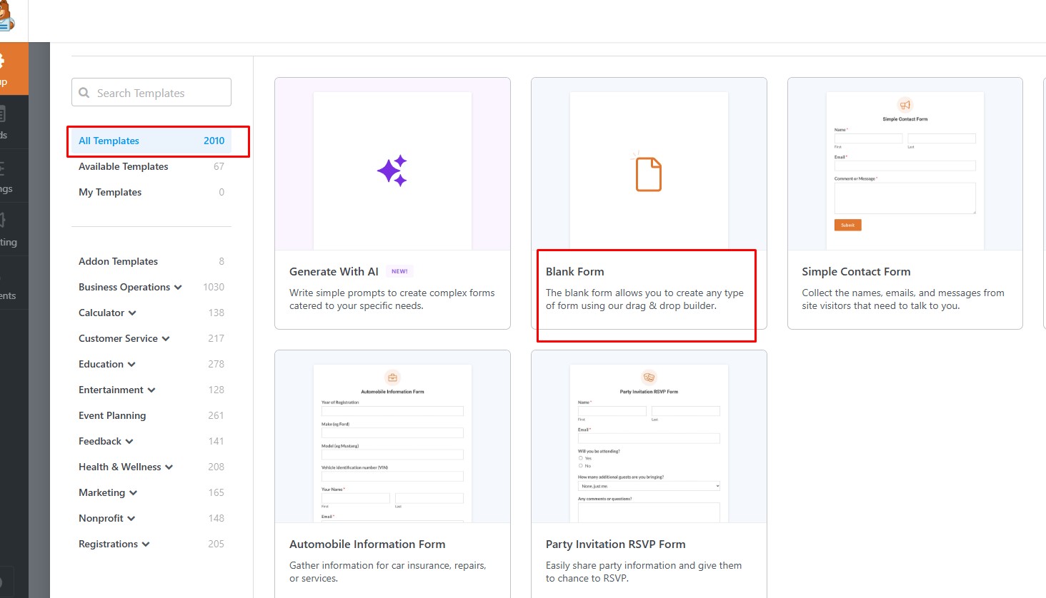 - Chọn mẫu form có sẵn hoặc bắt đầu từ form trống (Blank Form).