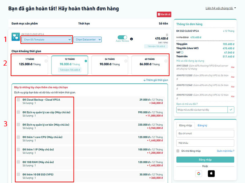 B3: Chọn thêm các dịch vụ đi kèm như cloud backup, dịch vụ quản lý,... (cái này có thể chọn hoặc không)